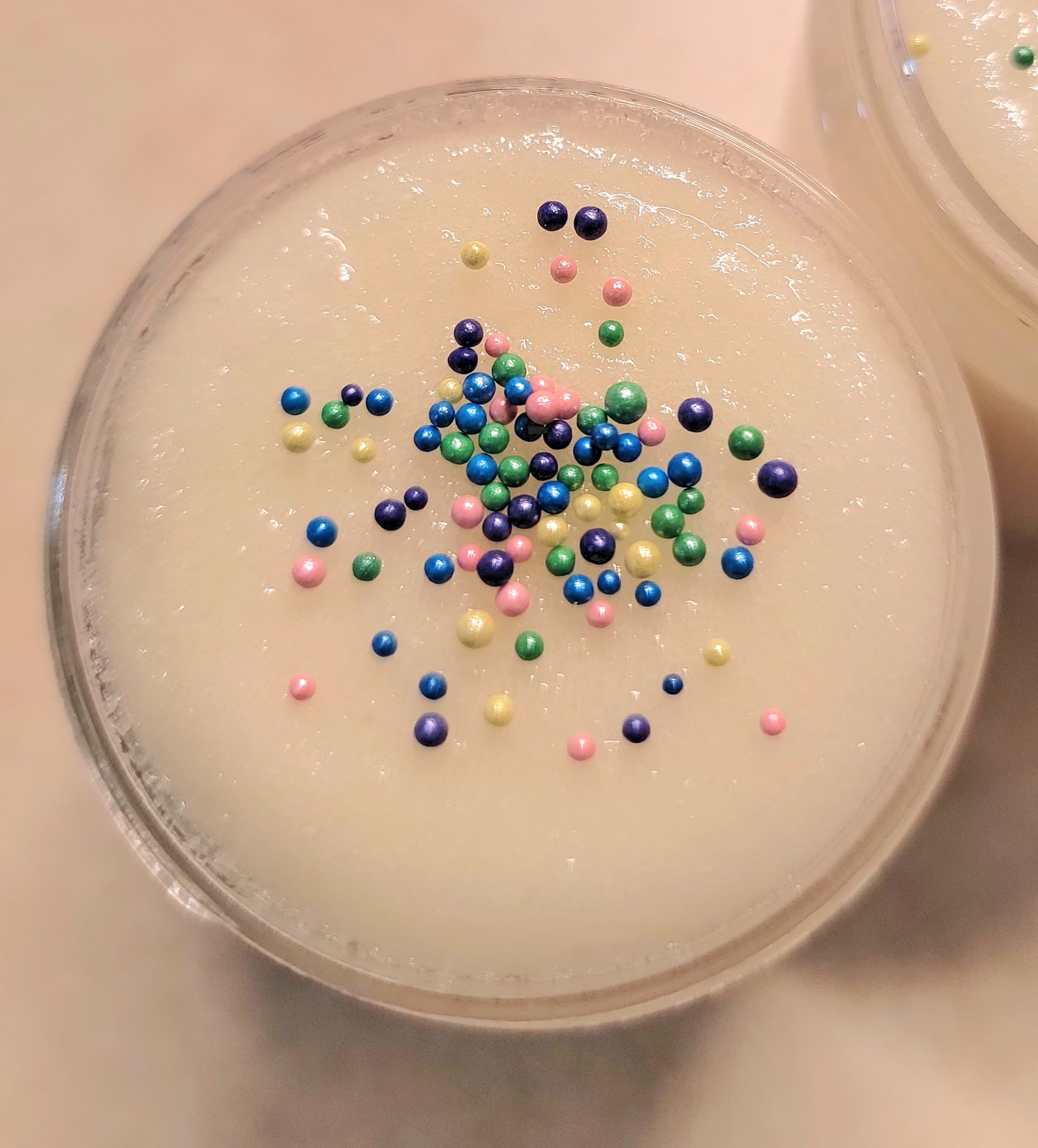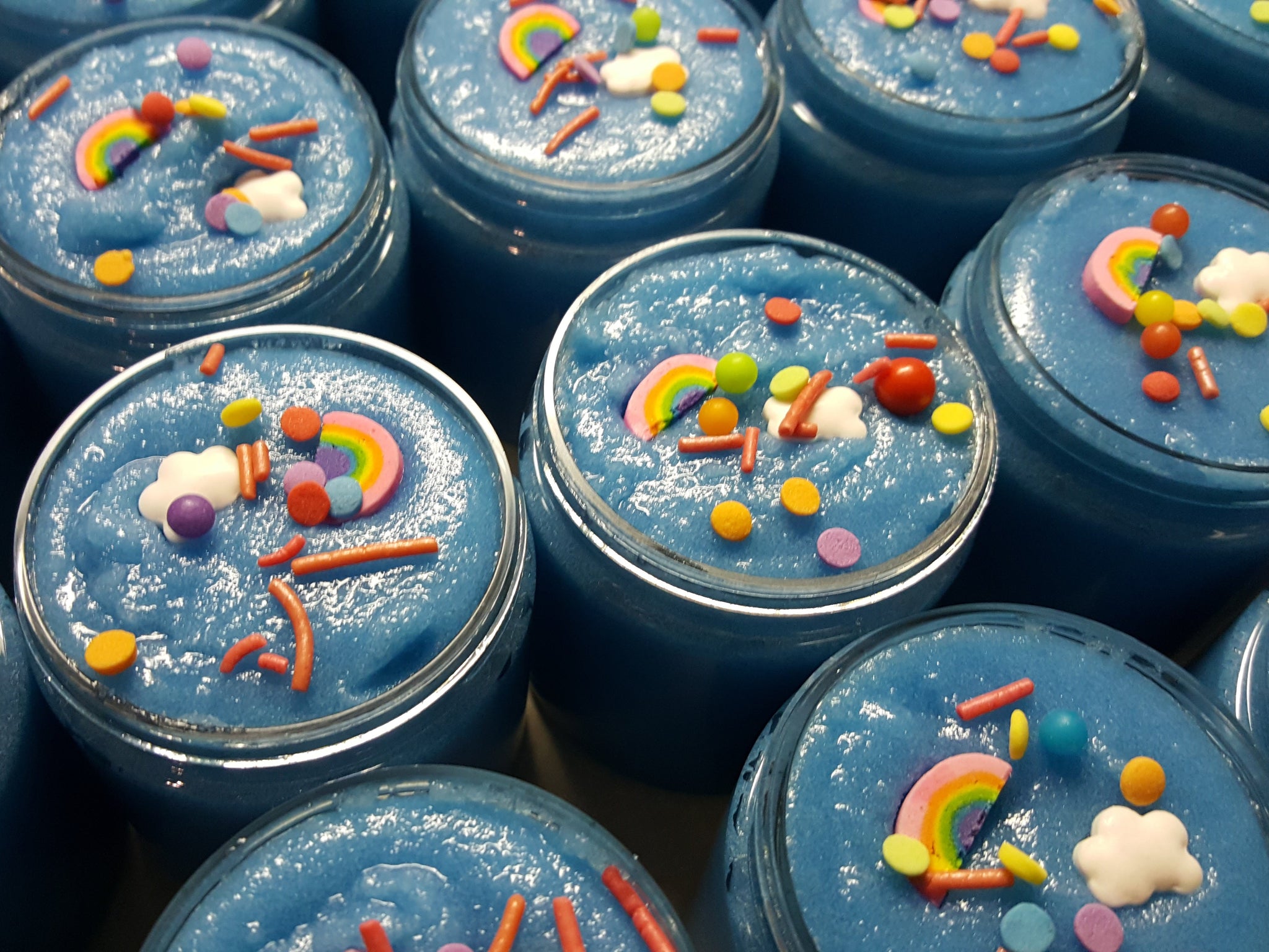 Ingredients: Pure Cane Sugar, Olive Oil, Coconut Oil, Emulsifying Wax, Goat Milk, Stearic Acid, Beeswax, Optiphen Plus, Fragrance (Mica and/or sprinkles depending on scent)
